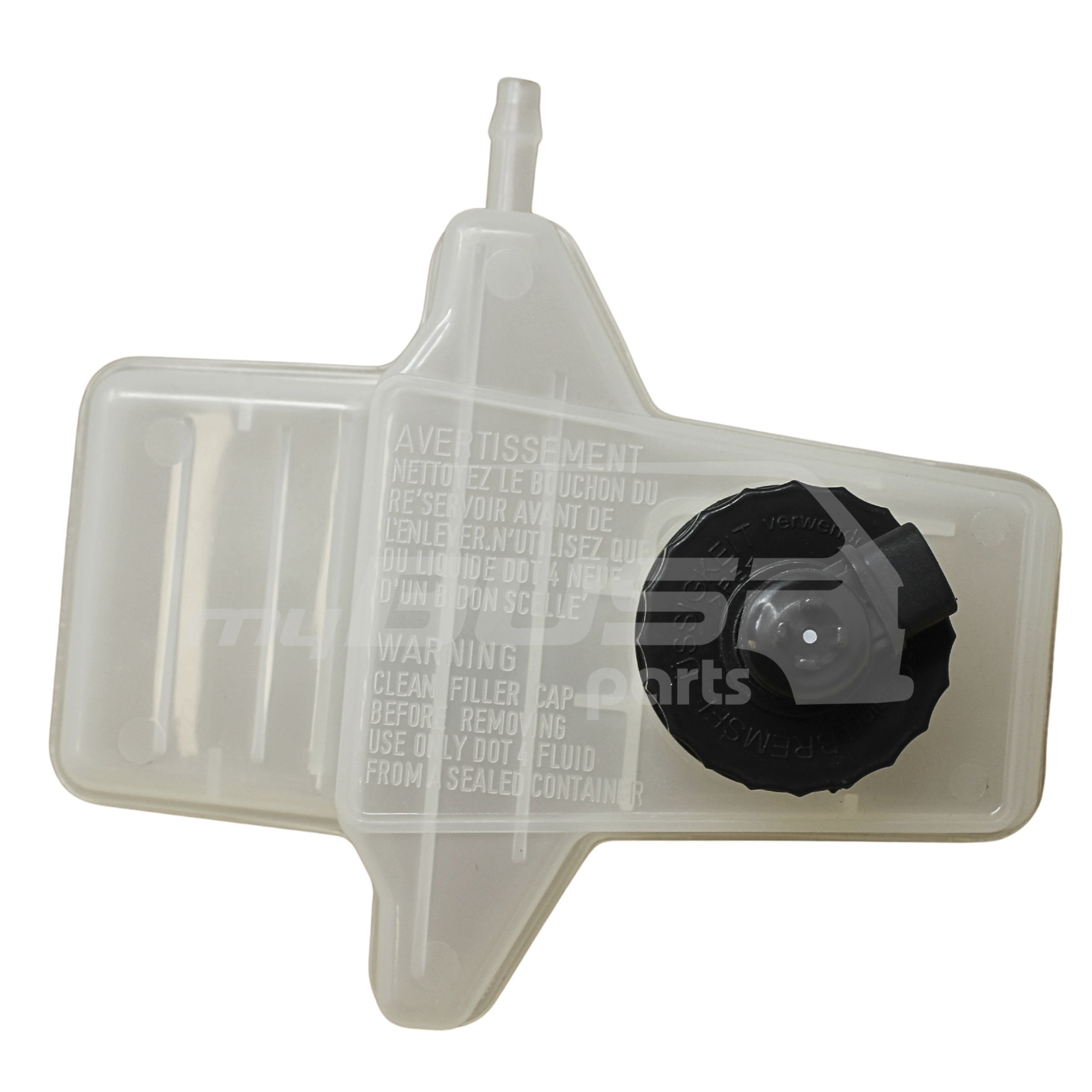 Reservoir for brake fluid including cap and sensor suitable for VW T3 with brake servo